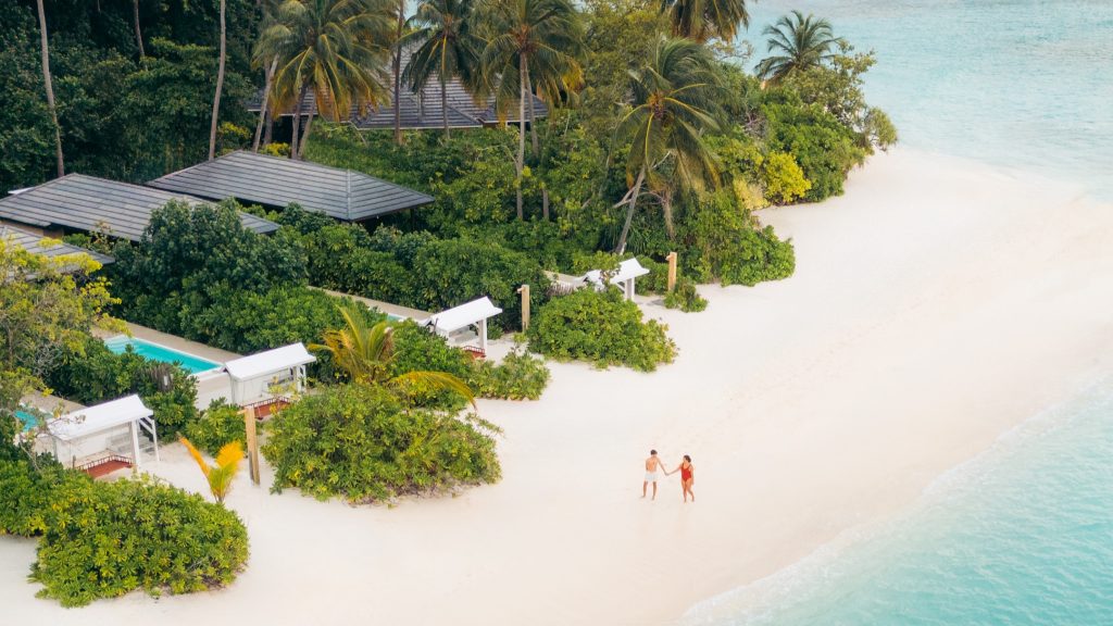 Guests can choose from beach villas, beach pool villas, and two-bedroom residences, each designed with privacy, space, and views of the turquoise lagoon. The island’s surrounding reef offers some of the Maldives’ best snorkelling, while nearby Hanifaru Bay provides an extraordinary opportunity to witness manta rays in their natural habitat.