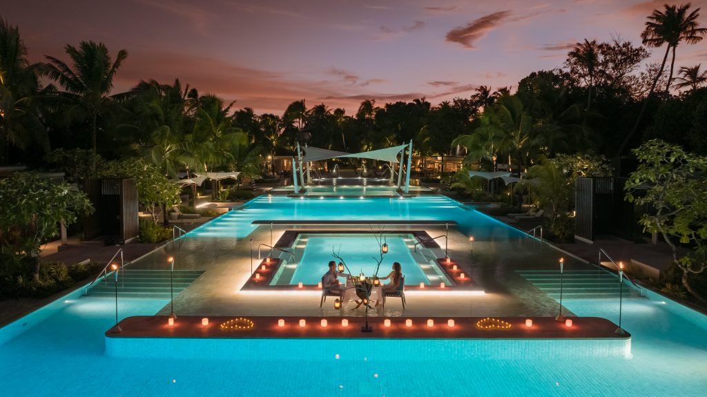 For Valentine’s Day 2026, the resort presents a bespoke collection of romantic experiences crafted to deepen connection. Couples may choose a Pool Escape beside the Maldives’ largest pool, complete with cocktails, Champagne, and an elegant multi-course menu. Alternatively, the Beach Escape offers a cinematic candlelit dinner on the sand, framed by lanterns and uninterrupted ocean views. Throughout the day, couples are invited to share meaningful moments through wellness and creative experiences, including sunrise couples’ yoga, a mid-morning painting escape, and a calming sunset yoga flow. Private Sound Healing Sessions further enhance emotional harmony through soothing vibrations, while an open-air Valentine’s Movie Date under the stars adds a touch of timeless charm to the evening.