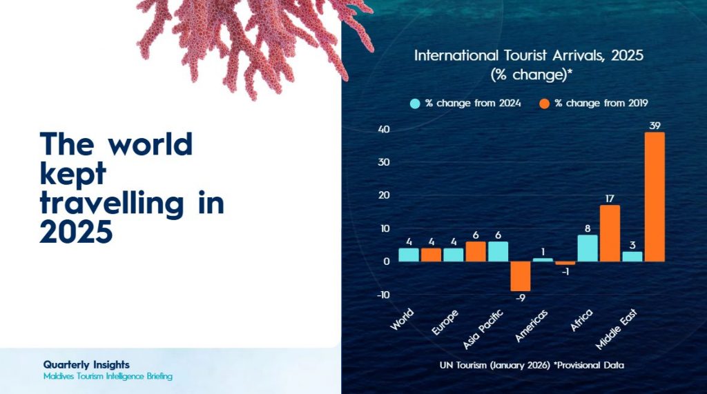Against that global backdrop, the Maldives delivered a strong performance in 2025. We welcomed 2,246,516 visitors, representing 9.8% year-on-year growth. This comfortably outpaced the global average and reinforces our destination’s competitiveness.